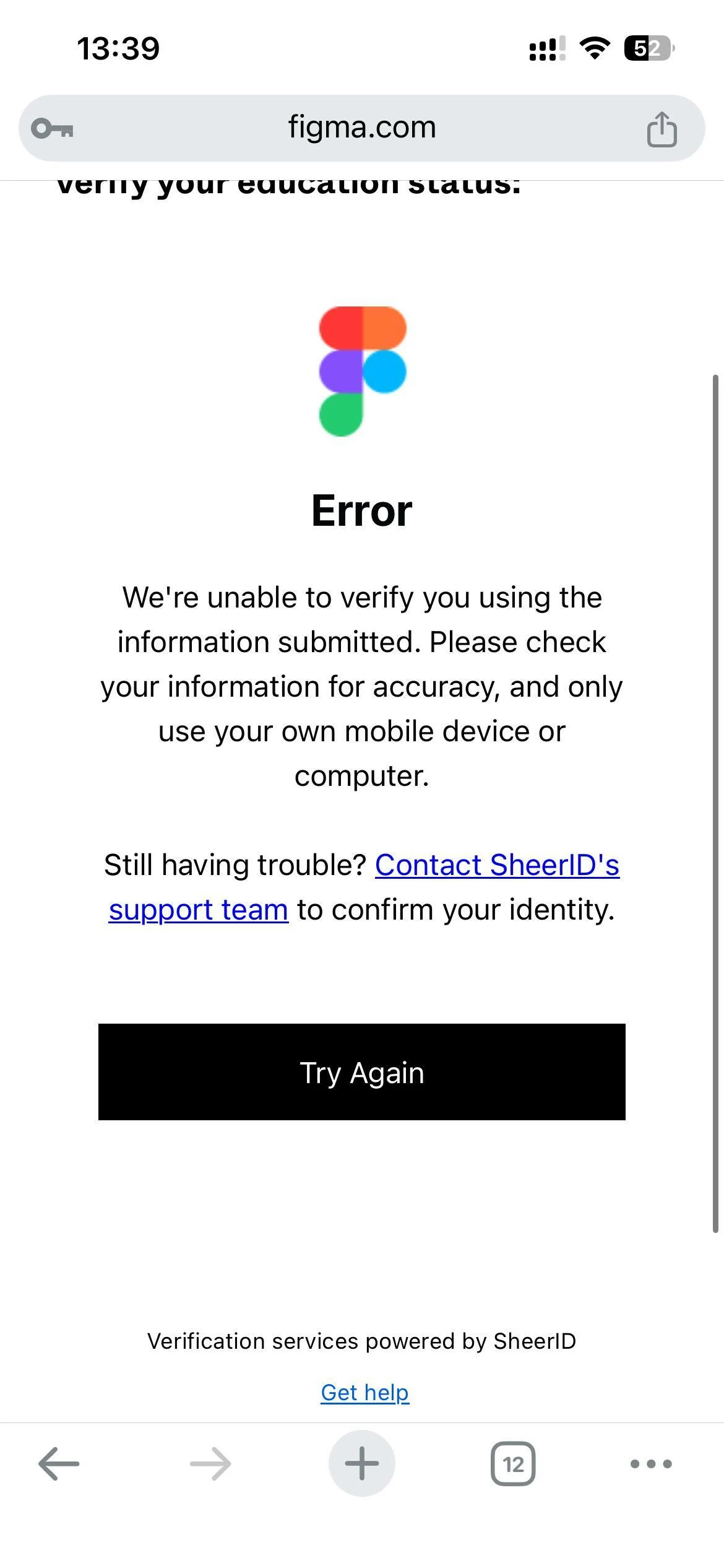 I’m a postgraduate design student at Monash University, and I’ve been trying to access Figma’s Education Program for several weeks now. Unfortunately, what should be a simple verification process has turned into a loop of rejections, blocked attempts, and system errors — all thanks to SheerID.