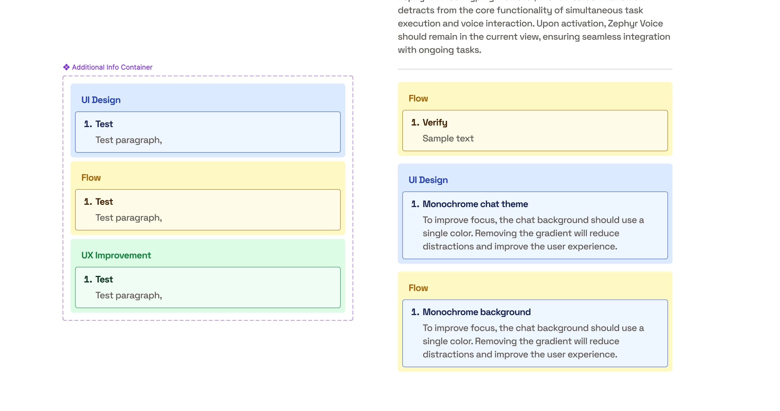 As seen in the attached screenshot: the right side shows instances where switching variants results in mismatched colors — a "Visual Design" heading sitting on a blue background in one instance and a yellow background in another, instead of consistently matching the variant's defined style.