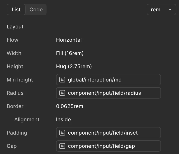 For some variables clicking the button (`# component/input/field/inset` for example) will copy the resolved variable value and other times it copies the variable name. There doesn’t seem to be a rhyme or reason. In this screenshot “Radius” and “Padding” copy the variable name while “Min height” and “Gap” copy the value. I would prefer it copy the name so we can use the reference in our design system.