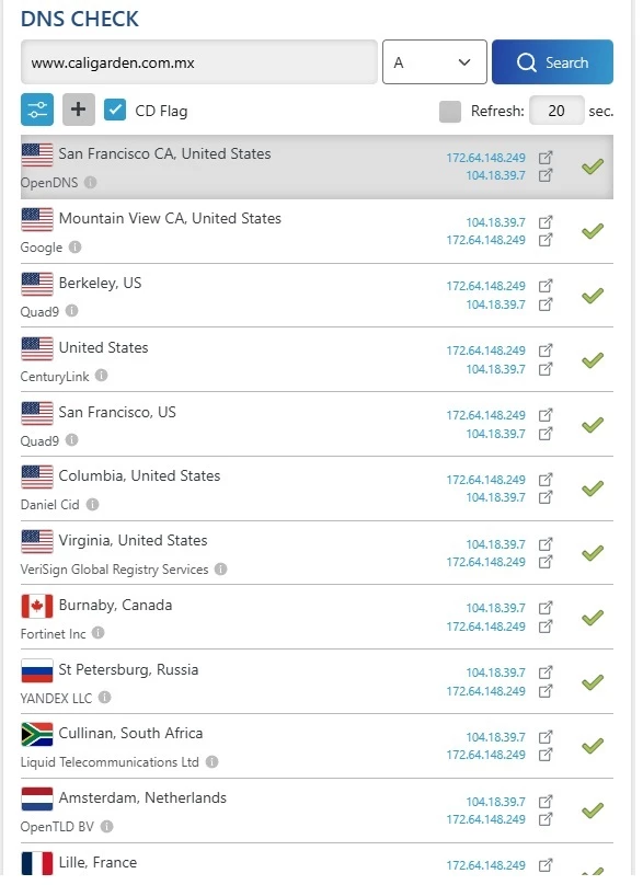 ✔ DNS globally correct