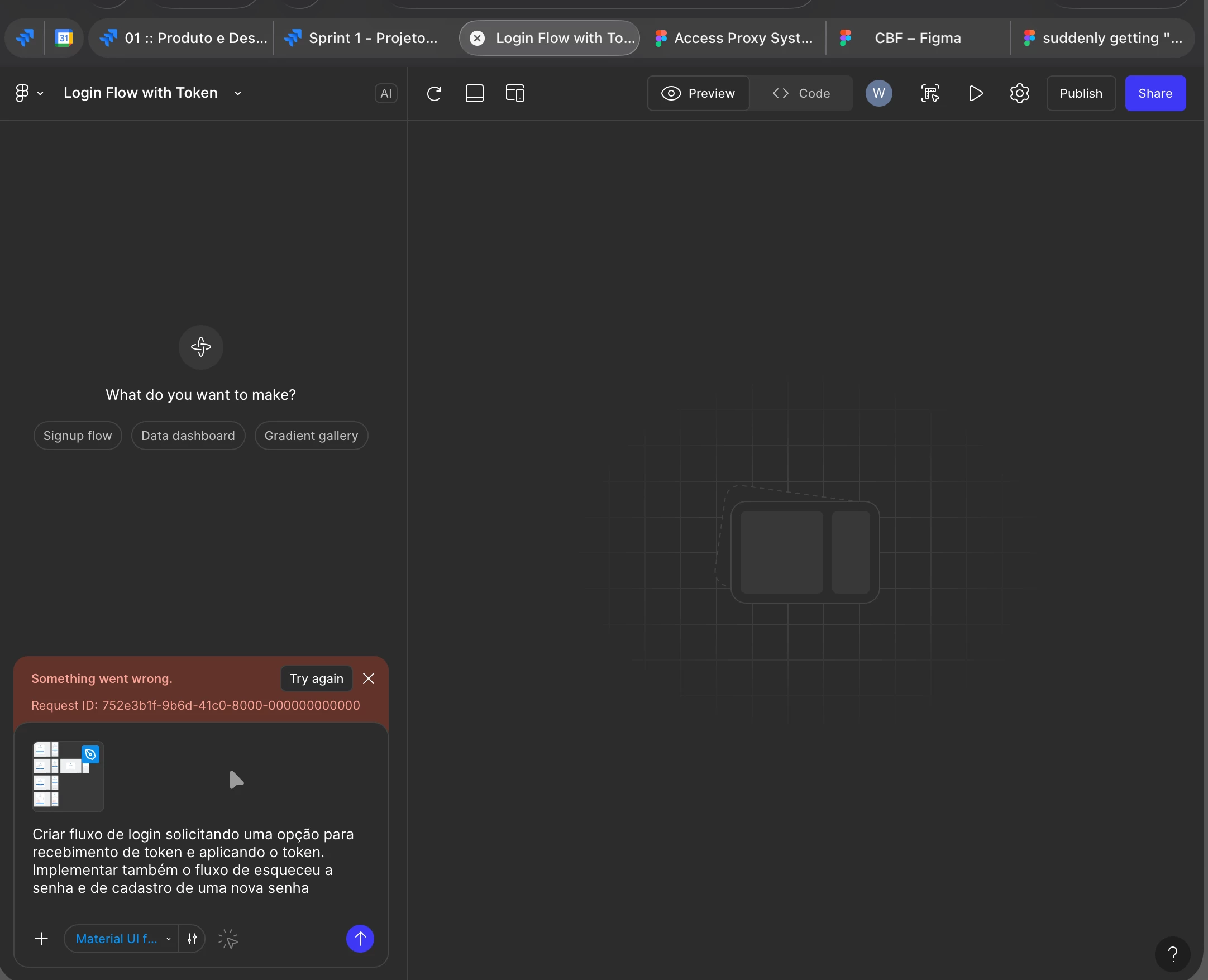 This just started today. After any prompt I make in apparently any existing Figma Make file I have, I’m getting a “something went wrong error”.