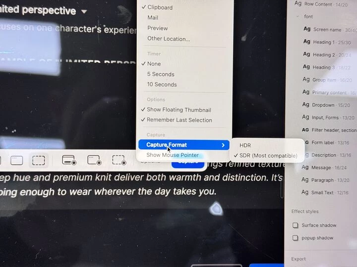When i select HDR option in capture feature in macOS. The image gets scaled 2x when pasted into the design.
