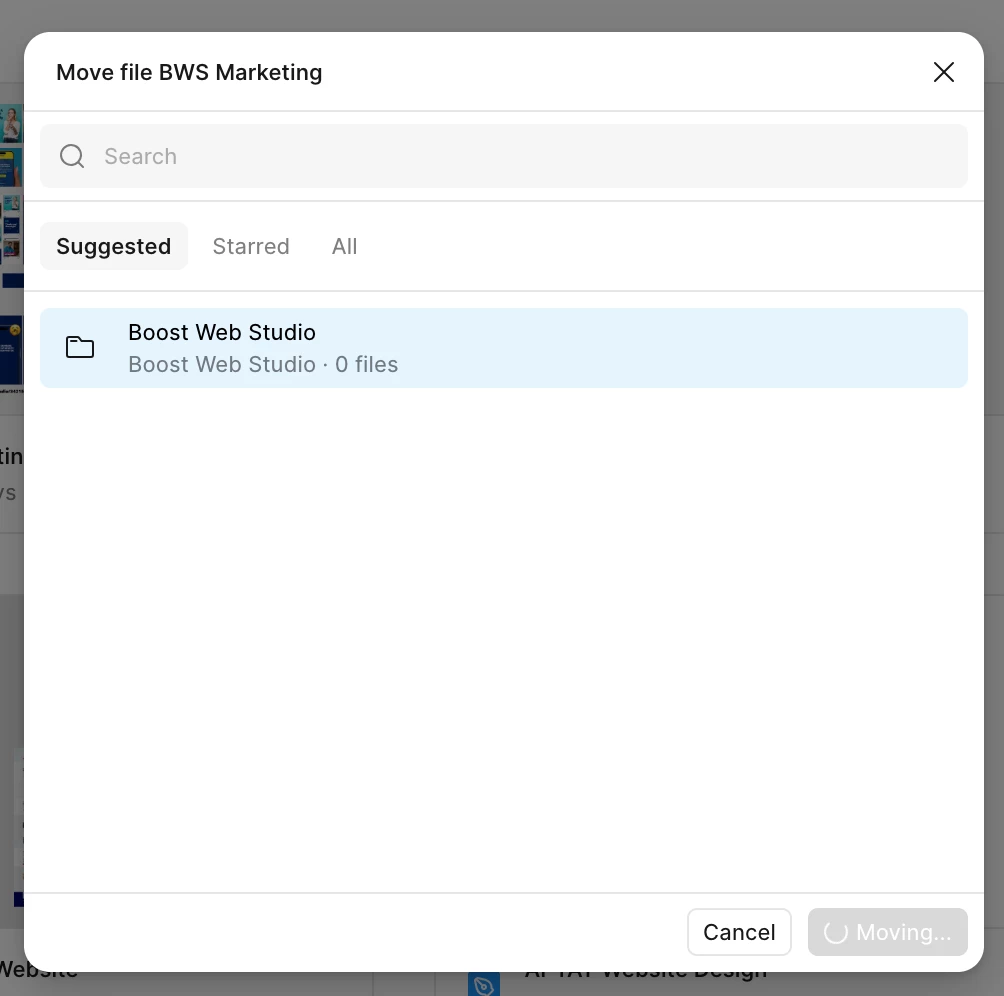 I'm unable to move files to your project on the Starter plan when I'm under the file limits. I just see the upgrade plan button after clicking Move File and the project.