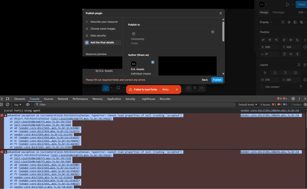 Trying to publish my Figma plugin, but getting an error saying “Please fill out required fields and correct any errors”.