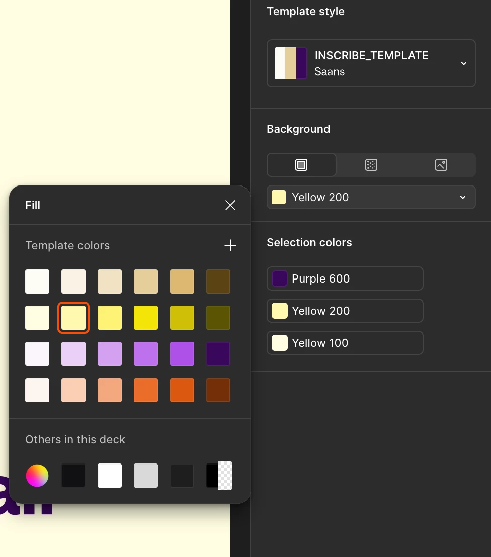 Even after fully cleaning my Slides template so that every element uses only my defined template colour variables, the colour picker in Design mode still shows many extra custom colours that are not used anywhere in the file. These appear to be leftover colours that were automatically created when pasting designs from regular Figma Design files into a Slides file.