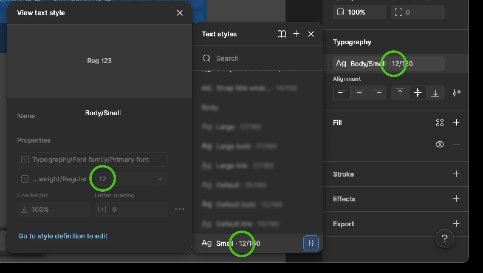 I have set up 3 modes: Mobile, Tablet and Desktop. Using the Small type style as example. Its 12px on Mobile (default value), 13 on Tablet and 14 on Desktop.