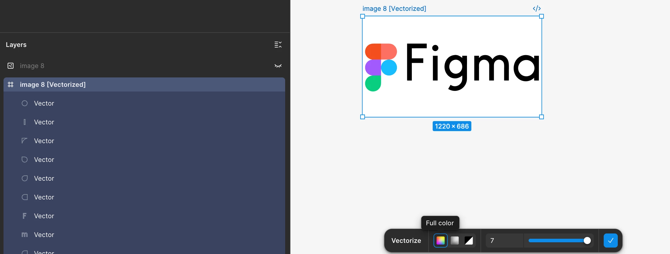 Here’s what i found, when i select one Image/frame to vectorize, it does makes it vector shapes etc.