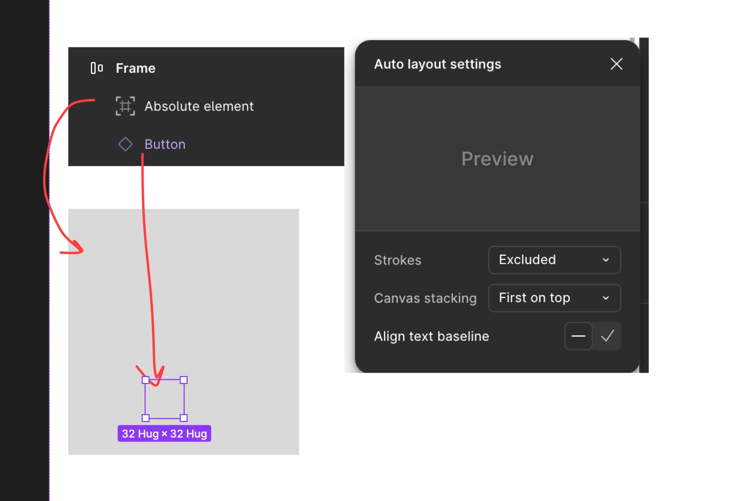 Try to recreate the same structure and open the prototype in figma, and you will see that you can click on the button through the absolute. Yes, that's right, this problem is in the prototype. And it can't be outside the prototype, you can't click on the button :)