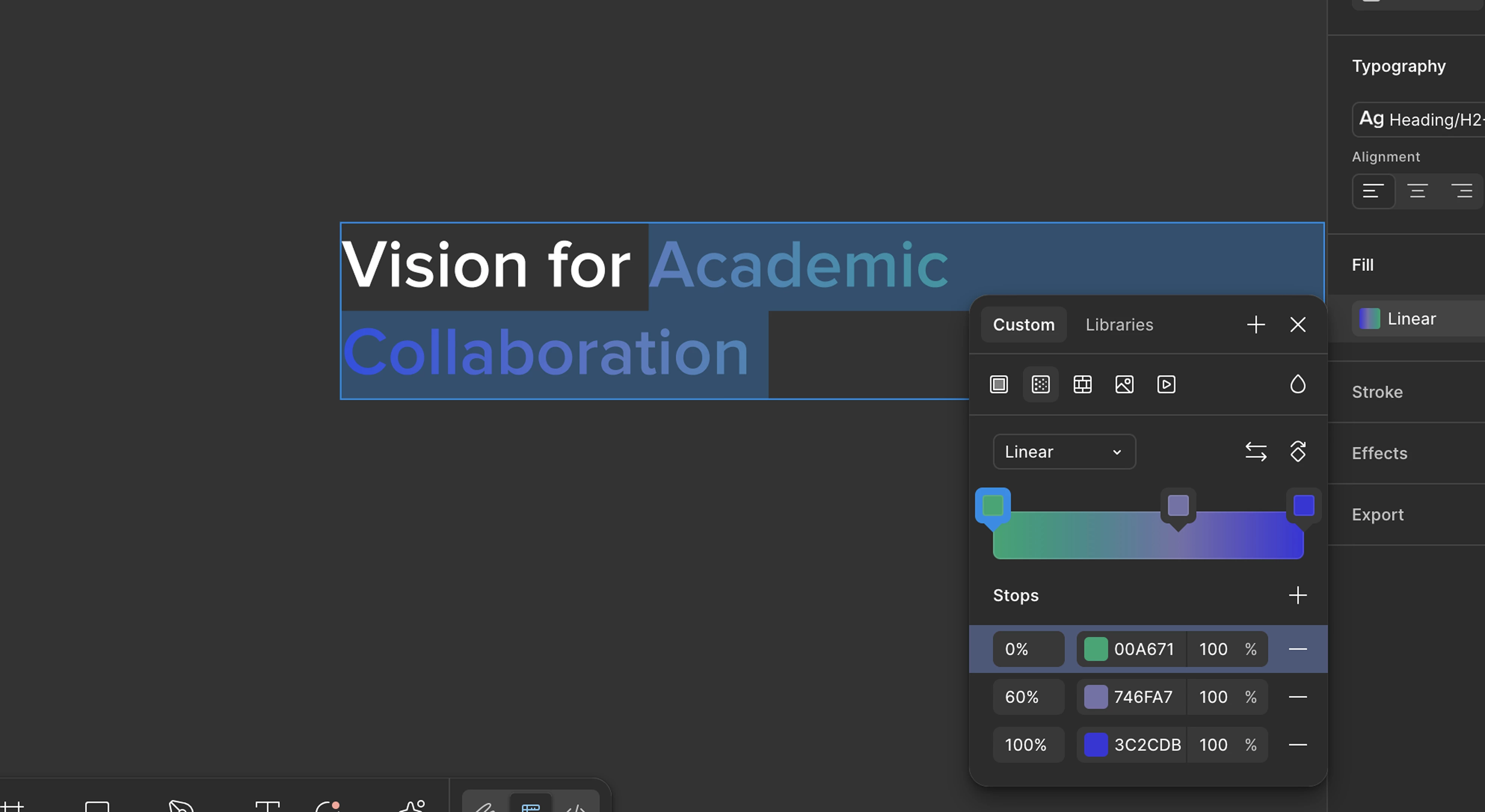 When I highlight just one word and apply a gradient (via the fill panel), the gradient technically applies, but no gradient handles appear on the canvas. This makes it impossible to adjust the direction, angle, or position of the gradient for that specific word.