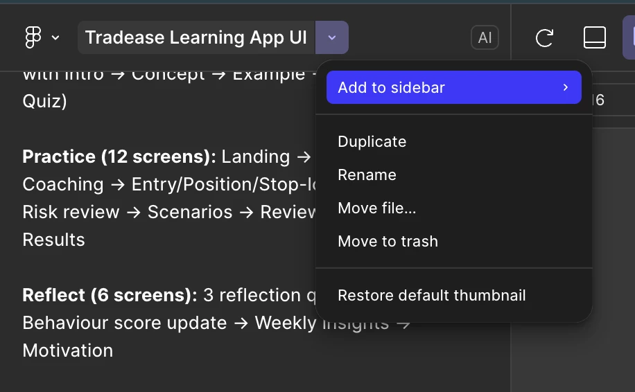 The drop down menu should show all my figma make files so i can easily swap between my projects. as a designer it would save a lot of time and efforts for me.  small suggestion but it will be highly impactful.