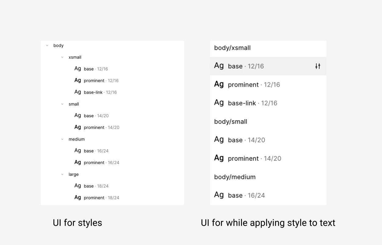This consistency would make applying typography styles much easier to scan and more intuitive, especially for teams managing complex design systems.