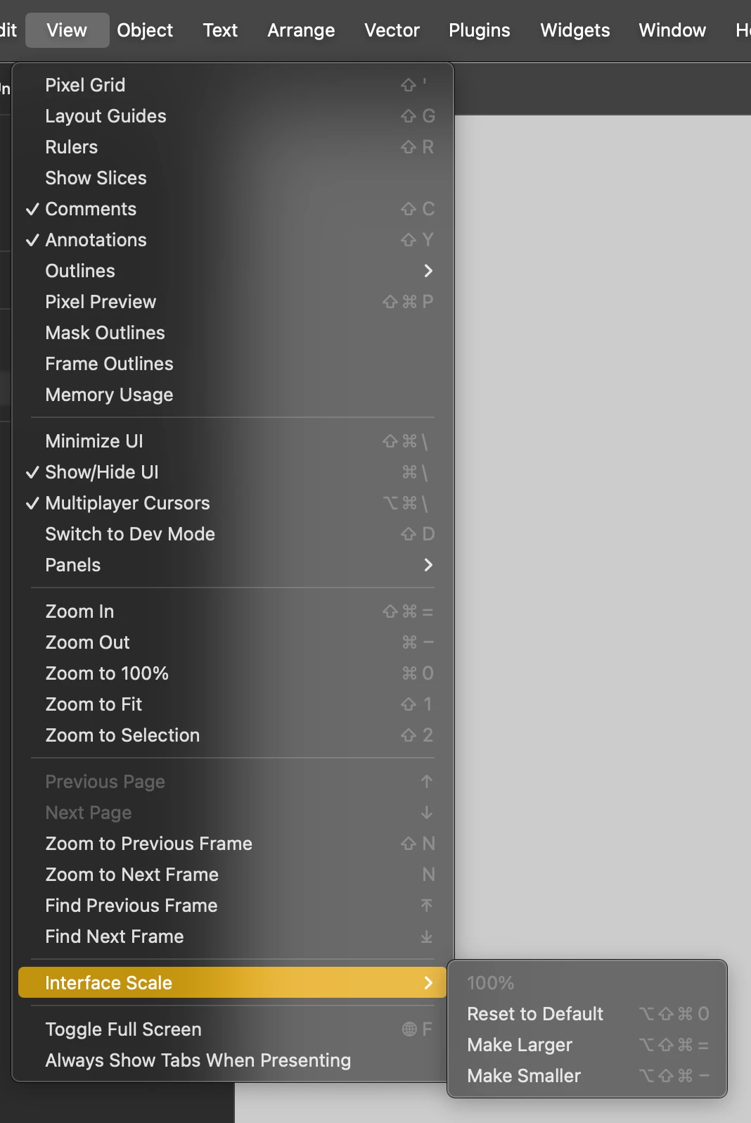 One burning gripe I’ve always had about Figma is how small the UI elements are on the page, especially when running a second monitor. At the resolution I’m running, all other apps are still legible without scooting closer to the screen. Figma, please help folks out by allowing me to up-scale type size of your native UI so that I can actually read what’s there without destroying my back and neck. Thanks.