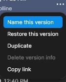 Figma > File > Show Version history (it’s not in View where you might initially expect it to be) - You probably want to show autosave versions as well as named versions (you probably aren’t naming your versions often enough amirite?). From the Version History filter menu, enable “Show autosave versions”
