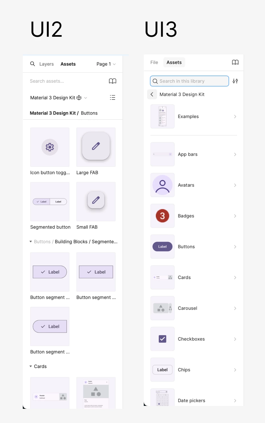 Hello, I have some feedback related to the UI3 library display. Visually it's pretty but the UX causes for additional clicks and a slowed down work flow. I’ve designed at 4 large corporate companies and these corporations (Allstate, United airlines, Walmart and Bath&body works) all have large libraries. It was so nice being able to have commonly used components expanded open so I could quickly grab and drop the components I need.