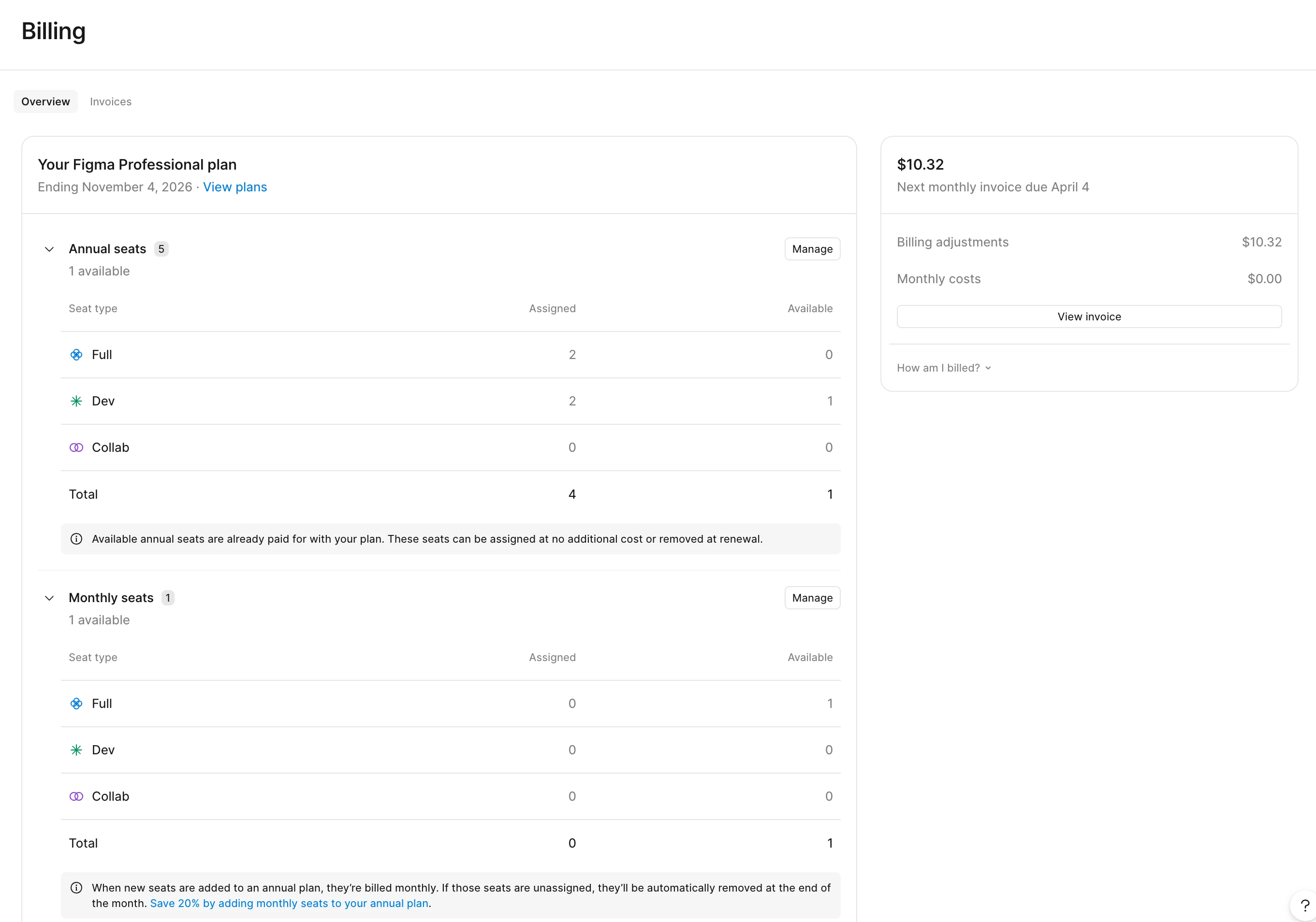 However, when I reviewed the billing, I noticed that I was still charged a billing adjustment for Monthly seats. After checking multiple times, I found that I still had individual edit access to a project within the team, which resulted in a charge of $10.32.