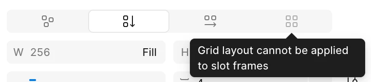 Hi folks! 🤠 I found a simple, not-too-hacky workaround for now. Wrap your Grid frame with an additional frame and then convert the outer one to a Slot. It works perfectly, but it does sort of undermine the Slot property in the properties panel, since you wouldn’t want to actually add anything there. Hope this helps!