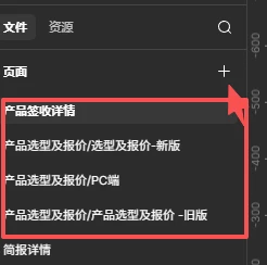 下面的figma,上面是mastergo,兩者的區別有一個新的分類,同一個大類裡面有不同的頁面作為區分。 figma 缺少此