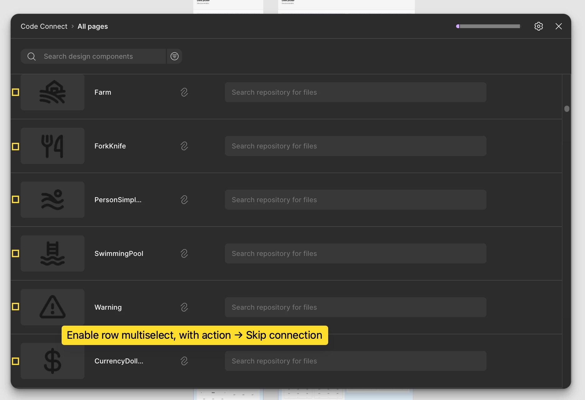 We have thousands of icons as components in our library that should not be linked via Code Connect.