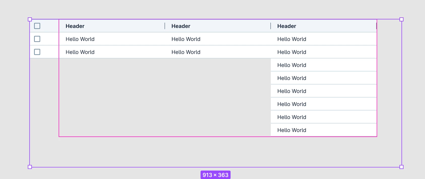 At our organization, OCLC.org, we just a lot of tables or in MUI’s case, DataGrids. Like a lot of datagrids. To make a component that expands columns and rows when an frame is expanded isn’t available. I’ve been working on this with Slots and components in our design system but you still need to select each slot and pull the duplicate bar to expand it to shape.