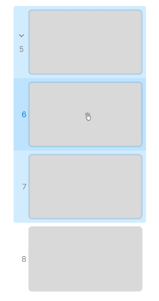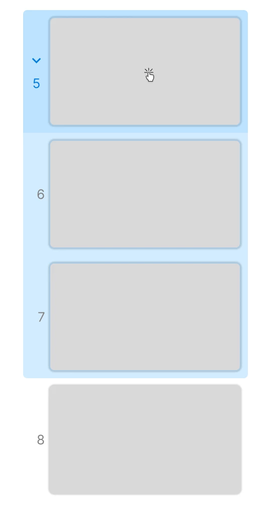 In Figma slides when you click on a group of slides it's not clear which slides are in the group. Attached is my solution. So the darker blue with the blue text and icon is the slide the user is on right now. But the slides in the lighter blue with grey numbers are slides in the group but show the user is not currently selected on those slides.