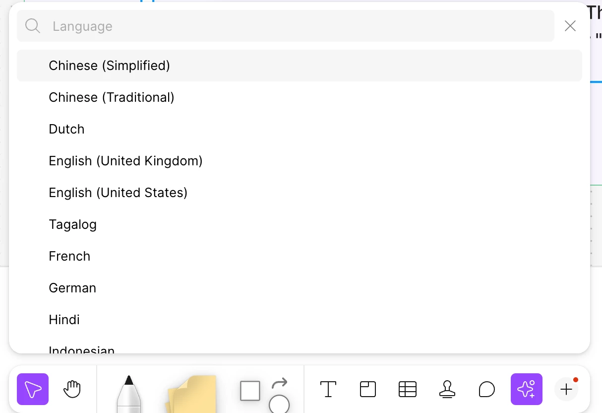 How often do people translate to maaany languages? I personally use 2, max 3, but have to search each time to translate to english. Would like to have my often used languages on top in order to avoid searching. Otherwise feature is awesome, using it in figma and figjam. Tank you.