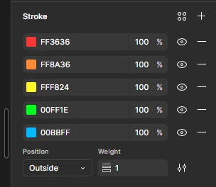 Although Figma supports multiple strokes, all strokes share the same property and have only one width value. As a result, even when multiple strokes are added, they overlap completely. This makes adding multiple strokes essentially meaningless.