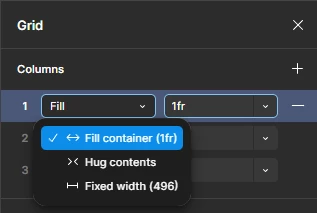Currently there is a different order in the dropdown for Grid columns/rows than the dropdown in Resizing. The muscle memory really hurts here.