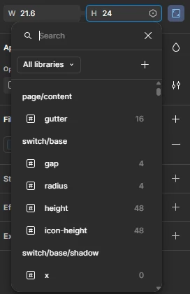 When assigning a variable to a component property, the search box displays both the variable name and its value, making it easy to know what you’re selecting: