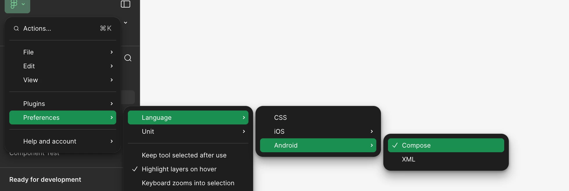 I would expect either Kotlin code (Jetpack Compose) or at least a clean JSON representation of the selected frame.